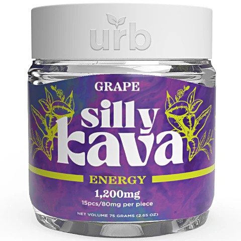 Silly Kava: Grape flavor transports the blend of Kava, Damiana Leaf and Green Tea Caffeine straight to your body and mind. 80mg active per piece (1,200mg per jar)